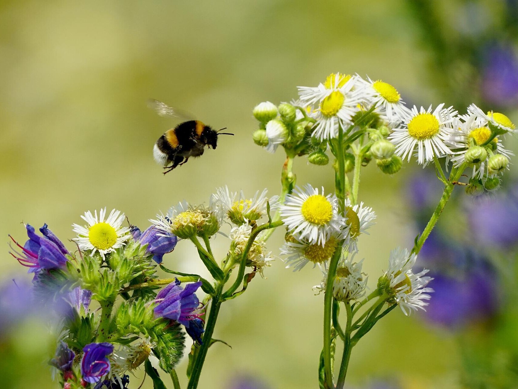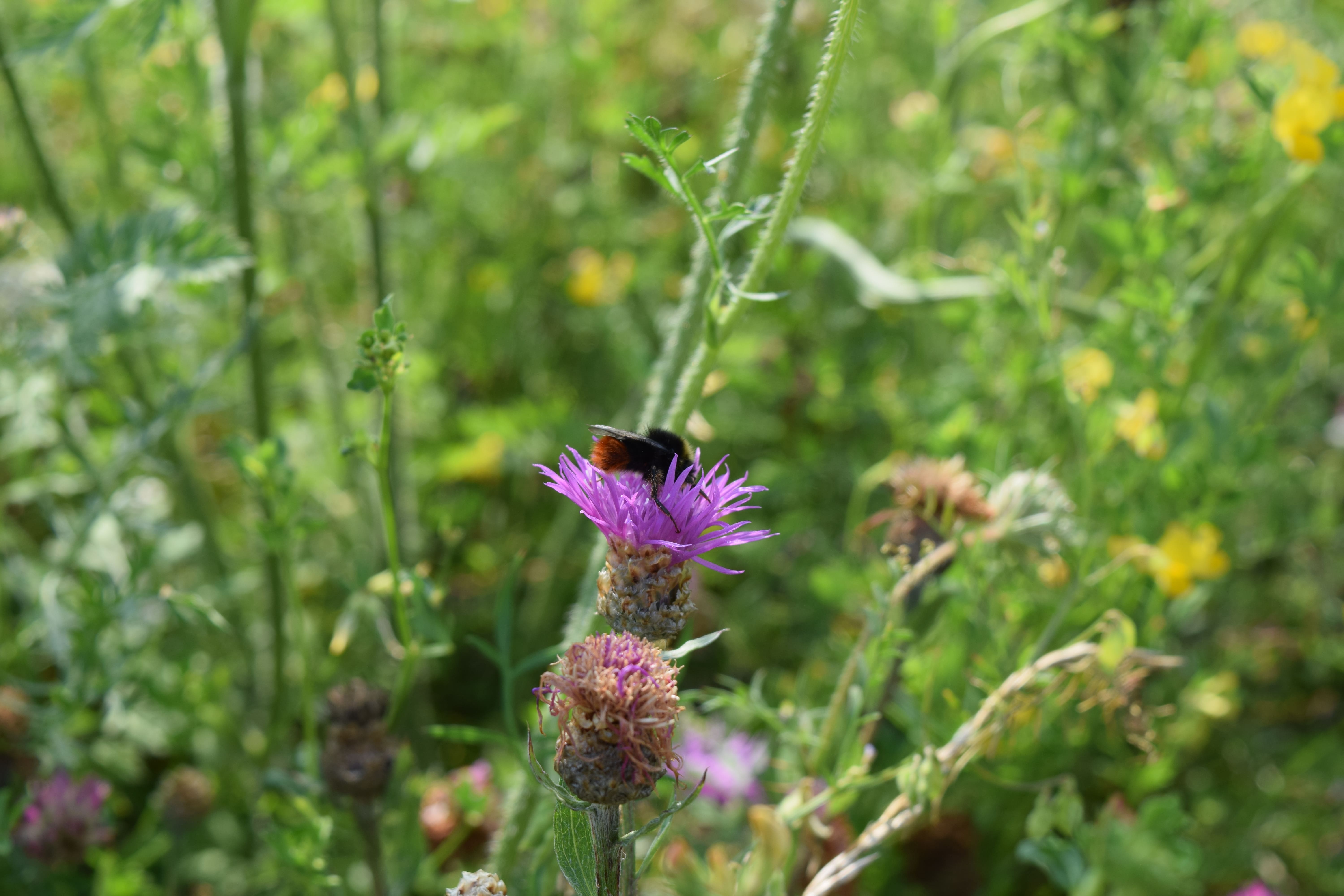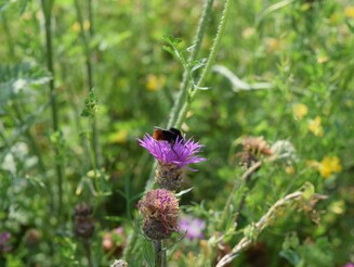 Eine an die örtlichen Bedingungen angepasste Blühwiese bietet vom Frühjahr bis zum Herbst Pollen und Nektar für jeden Geschmack. Neben Nahrungspflanzen brauchen viele Bienen und weitere Insekten auch Nistmöglichkeiten, Schlafplätze oder geschützte Orte für den Winter.