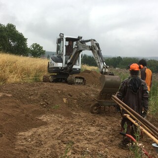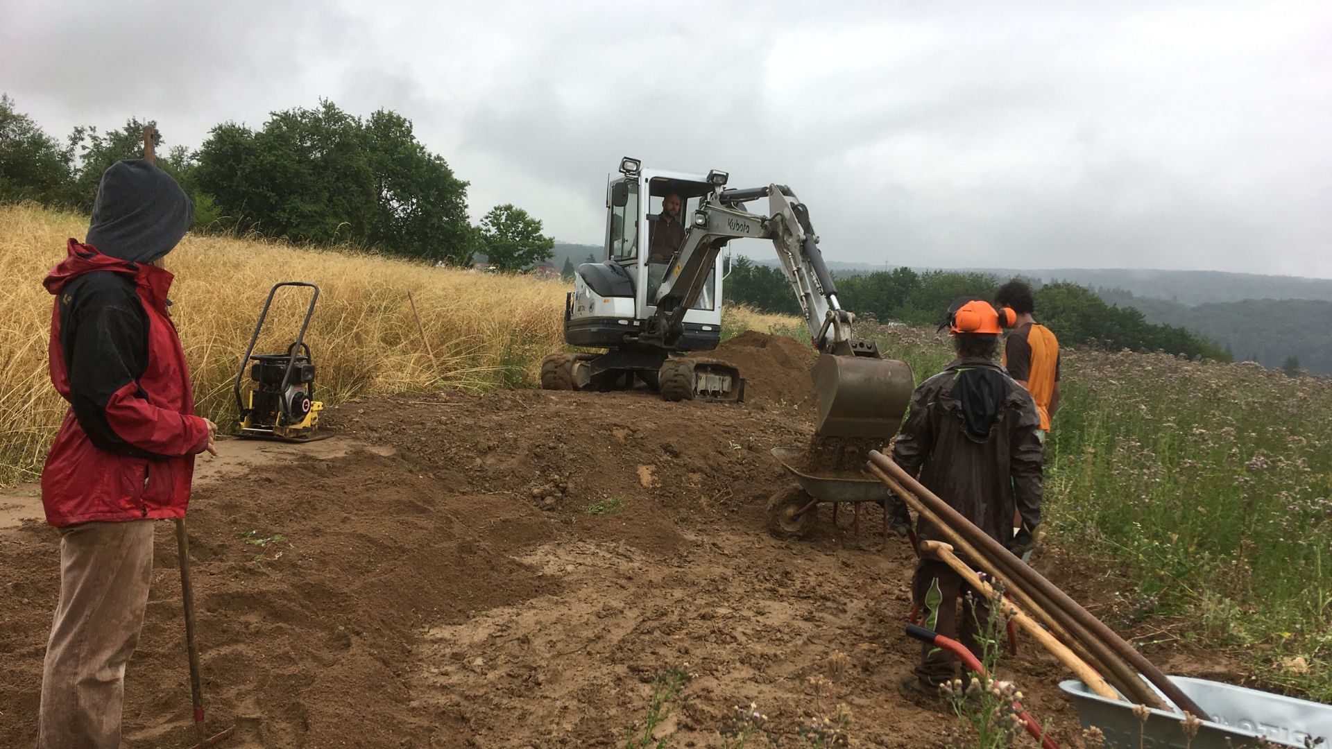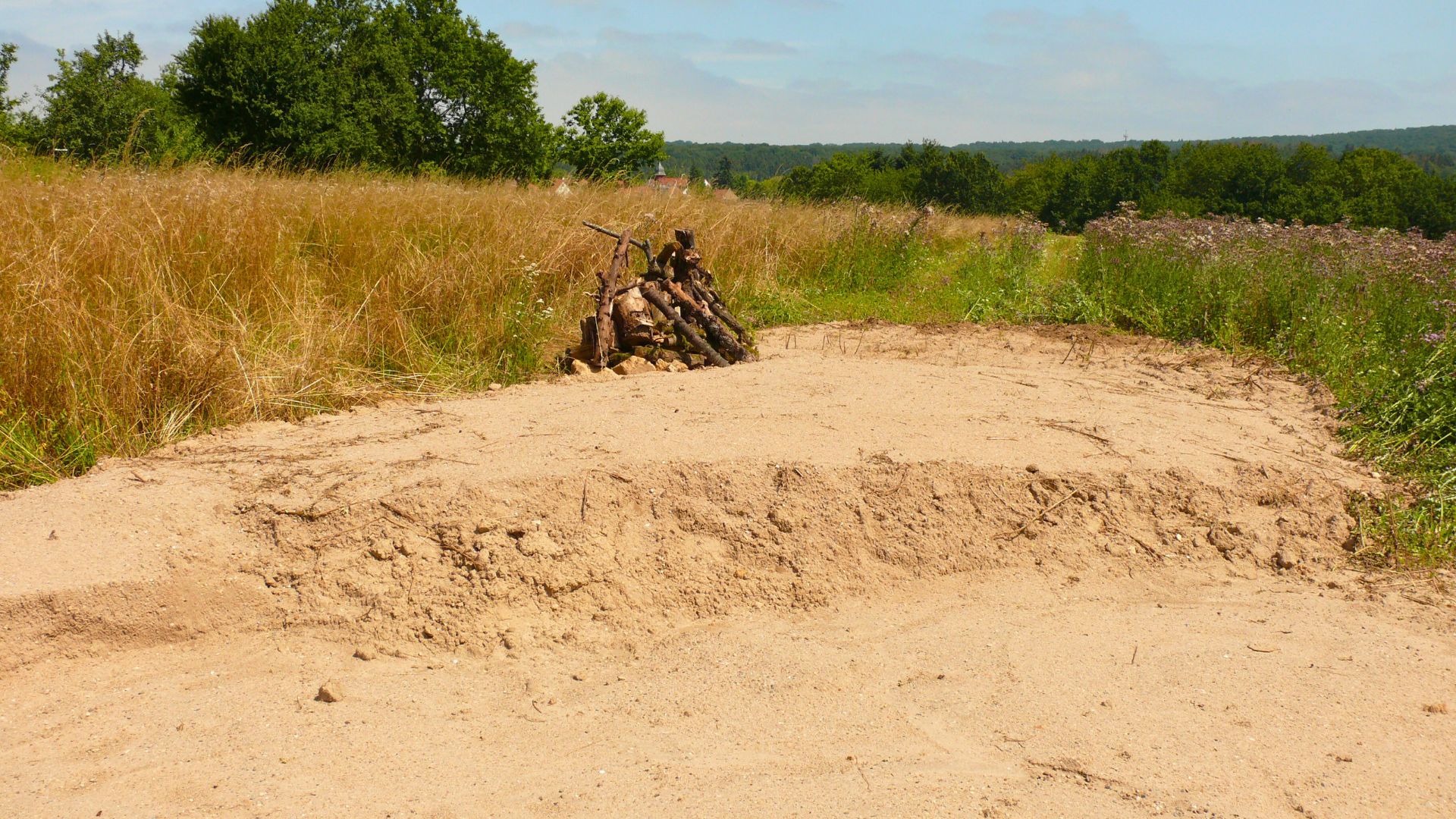 Daneben wurde außerdem darauf geachtet, einen geeigneten Nist- und Lebensraum zu schaffen. So haben wir Totholzhaufen, Sandbänke sowie eine Steilwand aus Lösslehm am Rande der Äcker angelegt. Viele der Wildbienenarten legen ihre Eier unterirdisch ab, beispielsweise die Sand- und Furchenbienen. Diese können jetzt dank der Sandbänke im Offenboden ihre Eier ablegen. Im Winter dienen die hohlen Stängel der stehen gelassenen Wildblumen zudem als hervorragende Überwinterungsmöglichkeit.