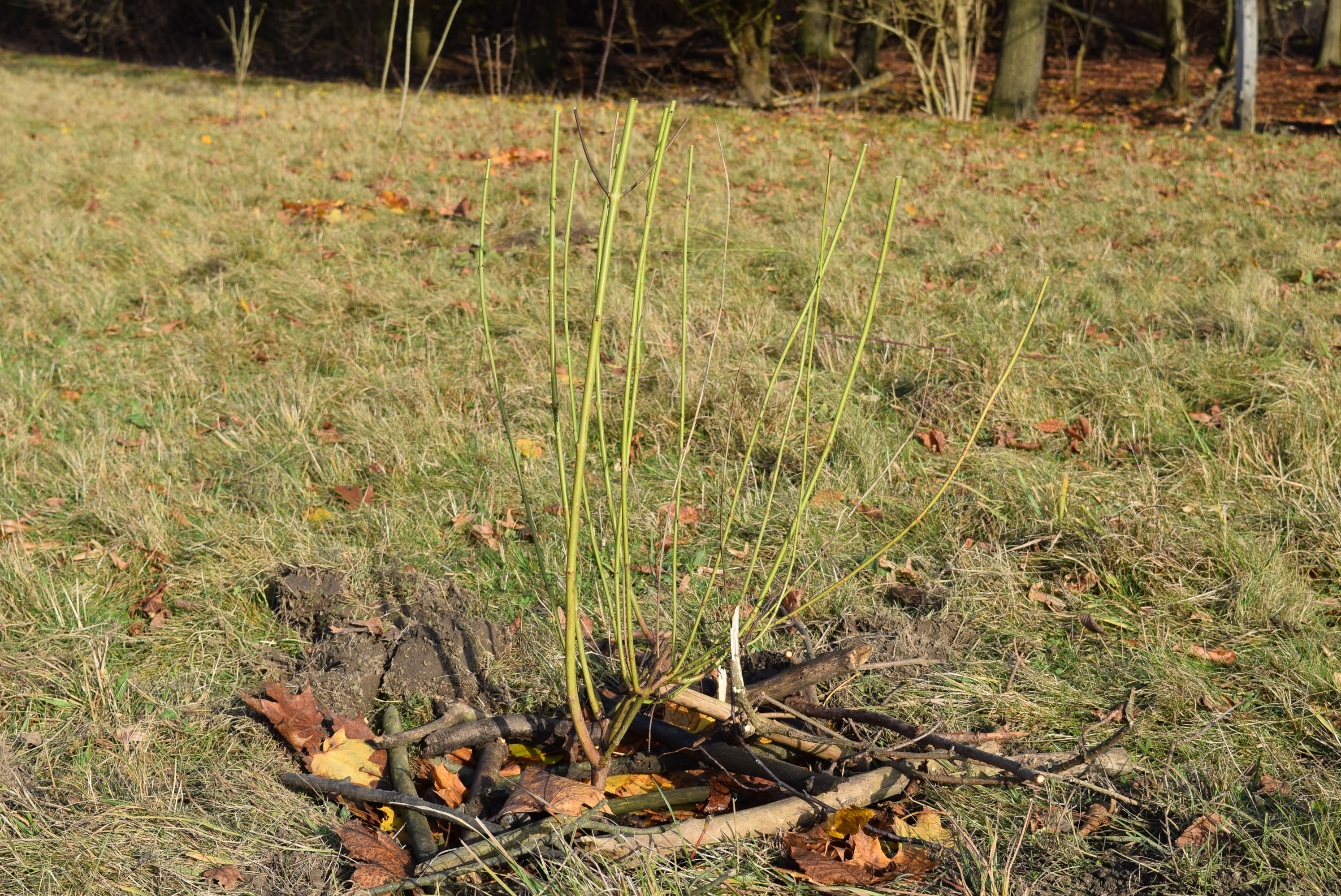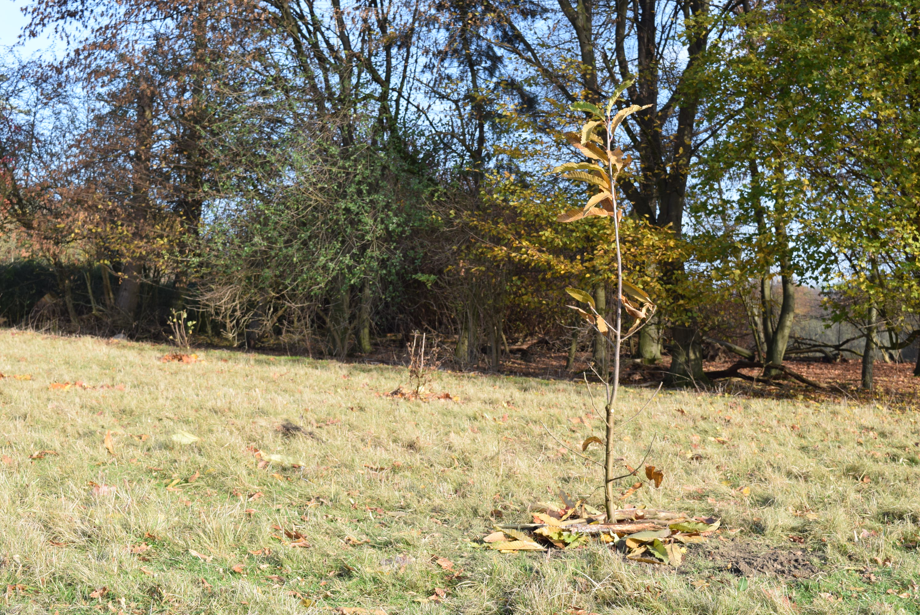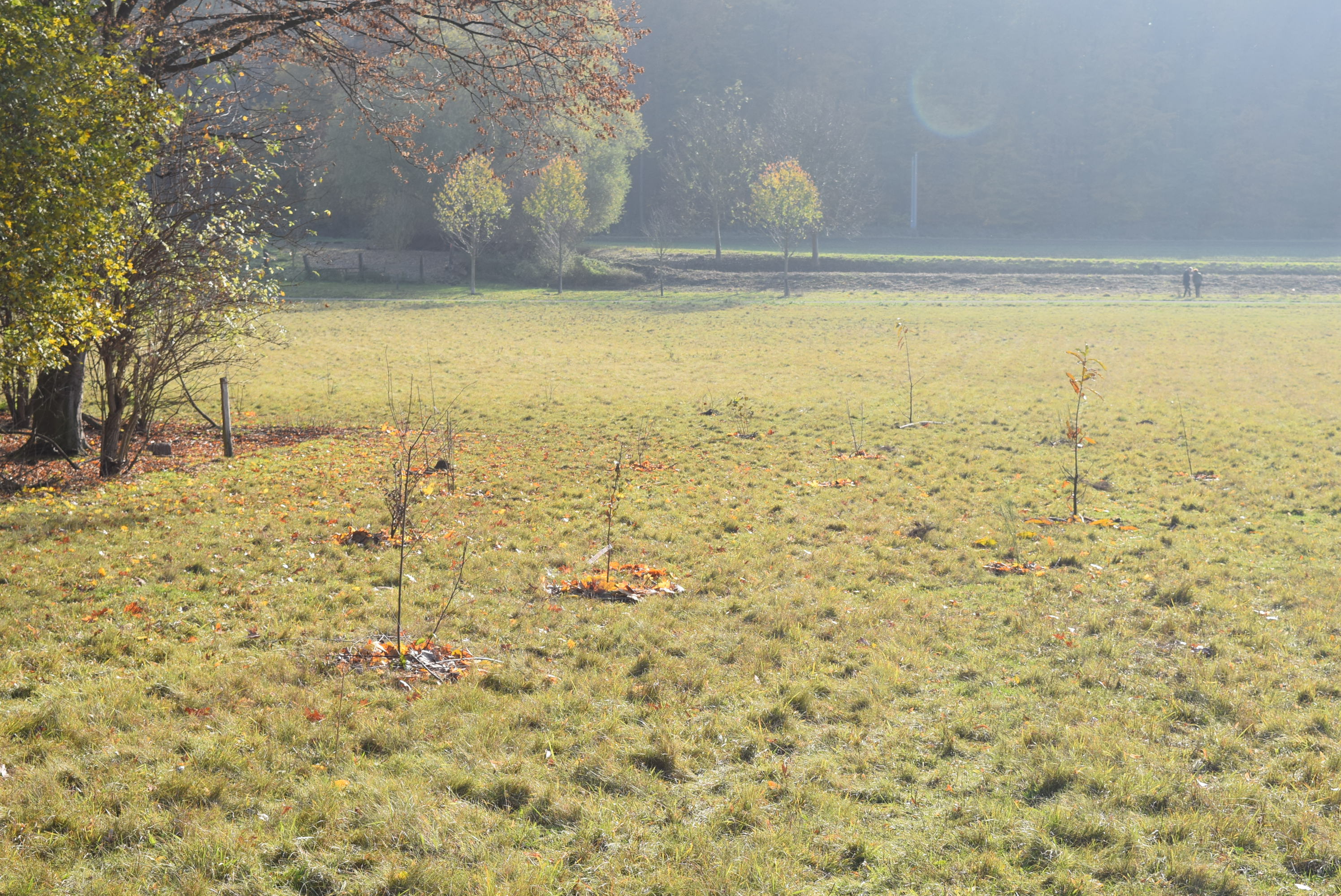 Auf der anderen Fläche wurde ein Waldsaum mit Bäume und Büschen aufgeforstet, darunter Sandbirke, Hainbuche, Hartriegel, Besenginster und viele Arten mehr - ein idealer Lebensraum für die heimische Tierwelt.
