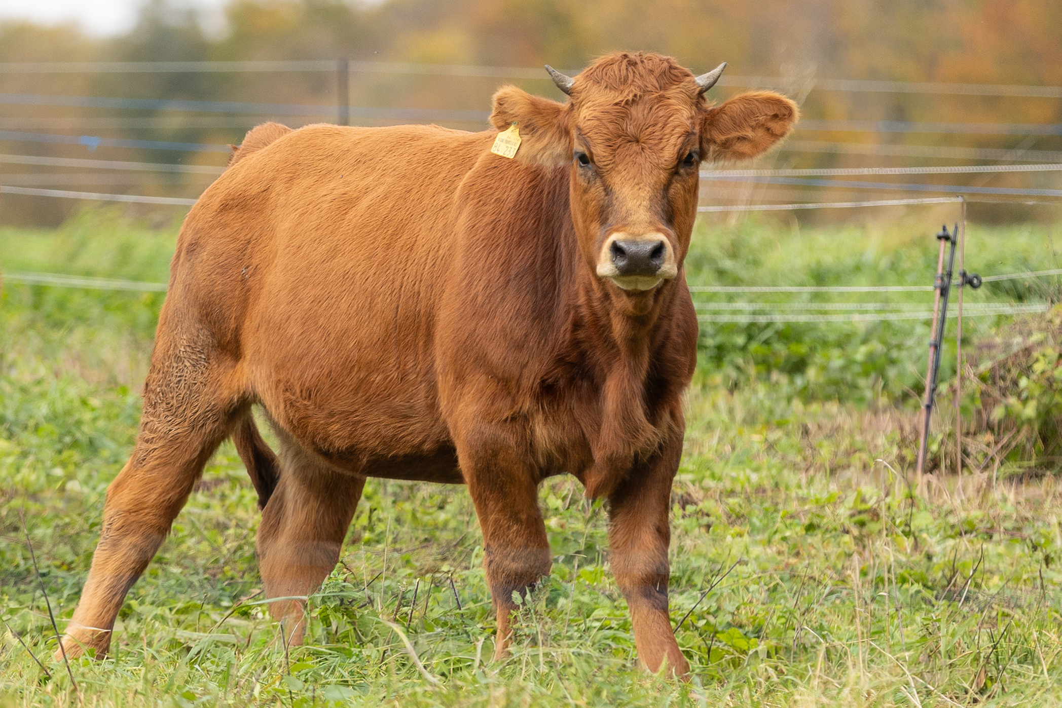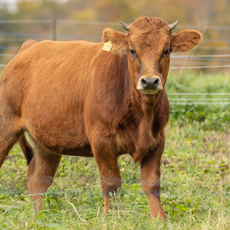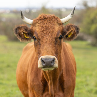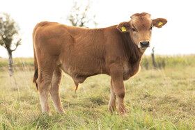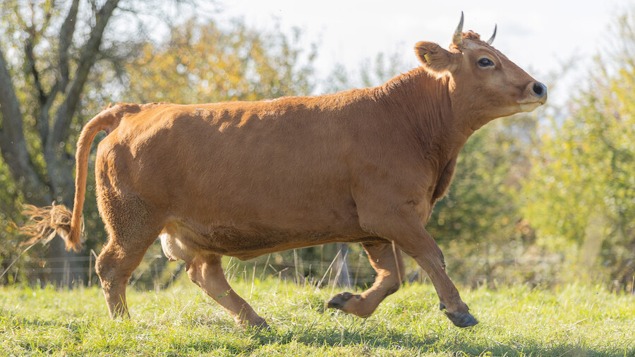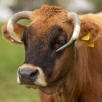Rosalie ist ängstlich und zugleich neugierig – eine echte Diva in der Herde. Wenn sie Hunger hat, macht sie lautstark auf sich aufmerksam und zeigt, dass sie weiß, was sie will. Nur manchmal lässt sie sich zwischen den Ohren kraulen, und dann auch nur, wenn ihr gerade danach ist. Sie ist wählerisch, aber charmant dabei. Rosalie bekommt wunderschöne Kälber und trägt mit ihrem 6 % Tarentaise-Anteil einen besonderen Einschlag in sich, der sie unverwechselbar macht.