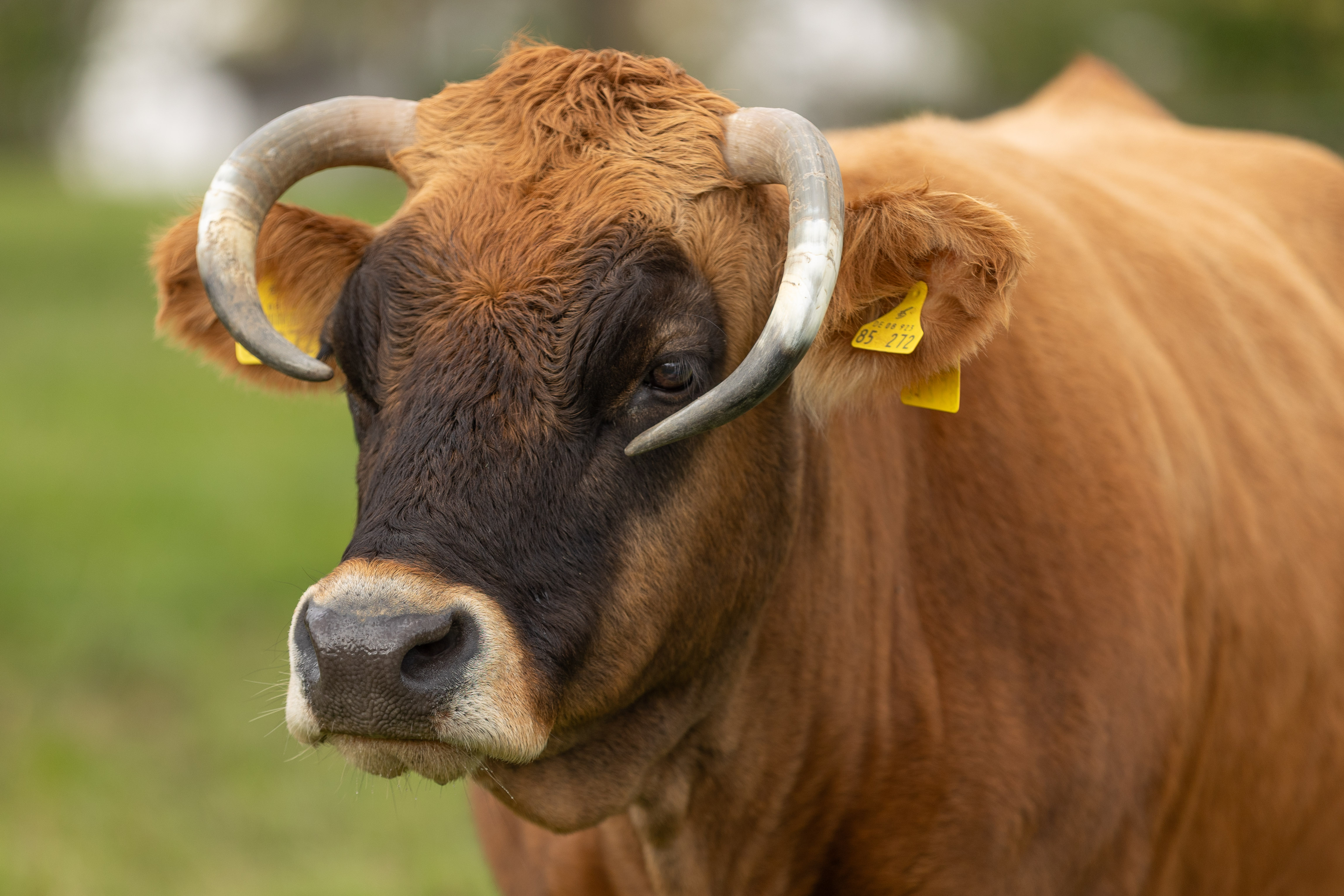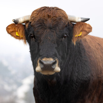 Ludwig ist bereits 9 Jahre alt und ist ein erfahrener Bulle mit ruhigem Wesen. Er ist vorsichtig und eher scheu, dabei stets freundlich und umgänglich. In der Herde verhält er sich wie ein wahrer Gentleman gegenüber den Damen. Von seinen bisher sieben Kälbern waren sechs weiblich. Ludwig stammt aus der X-Linie, sein Vater ist Xander. Offiziell heißt er Xaduk, doch sein Vorbesitzer nannte ihn Ludwig – und dieser Name passt einfach zu ihm.