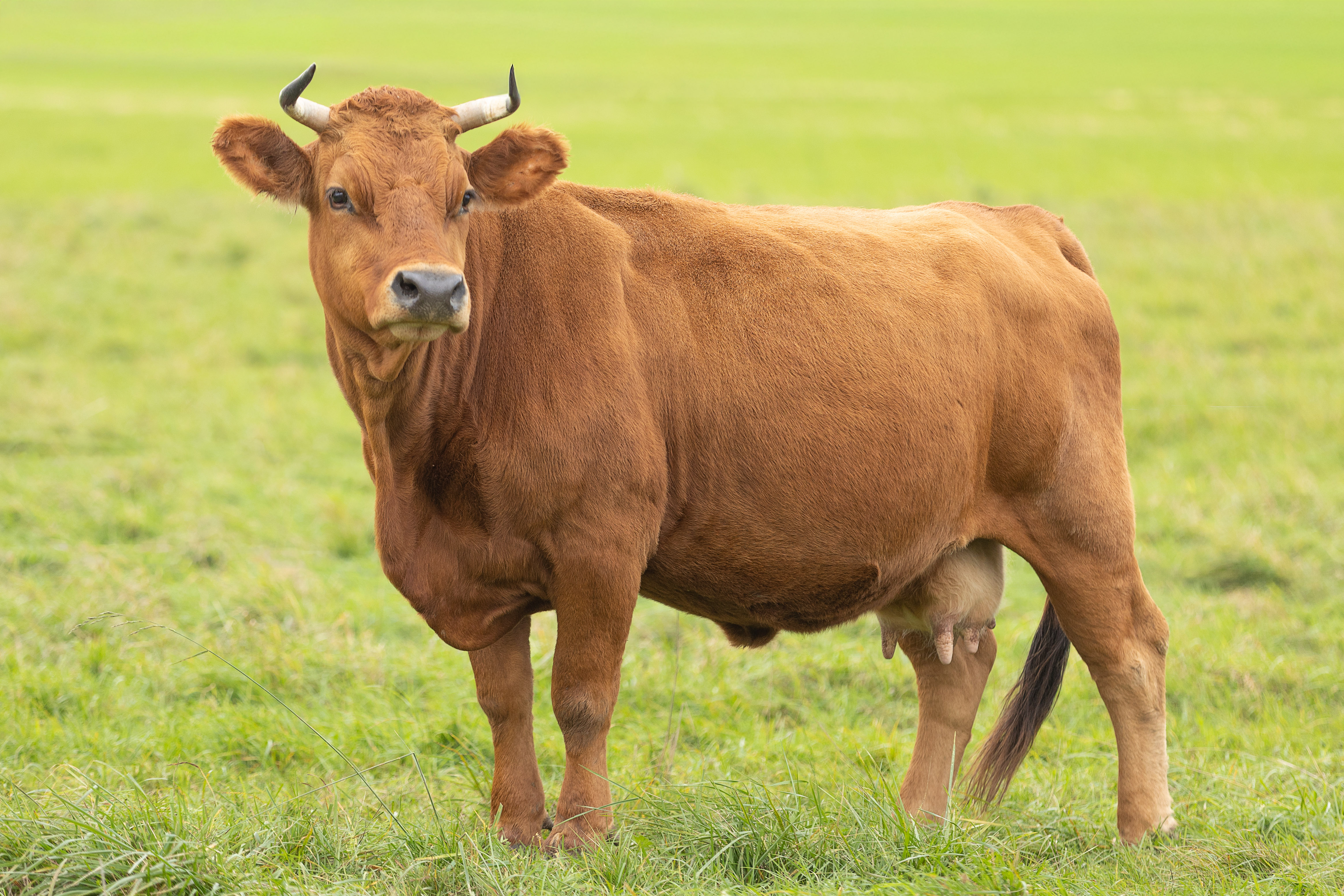 Ricke stammt aus der Raudilinie und ist eine kluge und sehr wachsame Kuh. Meist ist sie die Erste, die sieht, wenn jemand kommt. Mit ruhigem Blick beobachtet sie ihre Umgebung und entgeht keinem Detail. Trotz ihrer Größe ist sie sanft und meidet Rangkämpfe. Wenn es unruhig wird, zieht sie sich lieber zurück, anstatt zu drängen. Sie braucht keine Stärke zu beweisen, um ihren Platz zu kennen. Am liebsten lässt sie sich kraulen, dann steht sie still und genießt die Nähe. Eine besonnene, freundliche Kuh, die Ruhe und Vertrauen ausstrahlt.