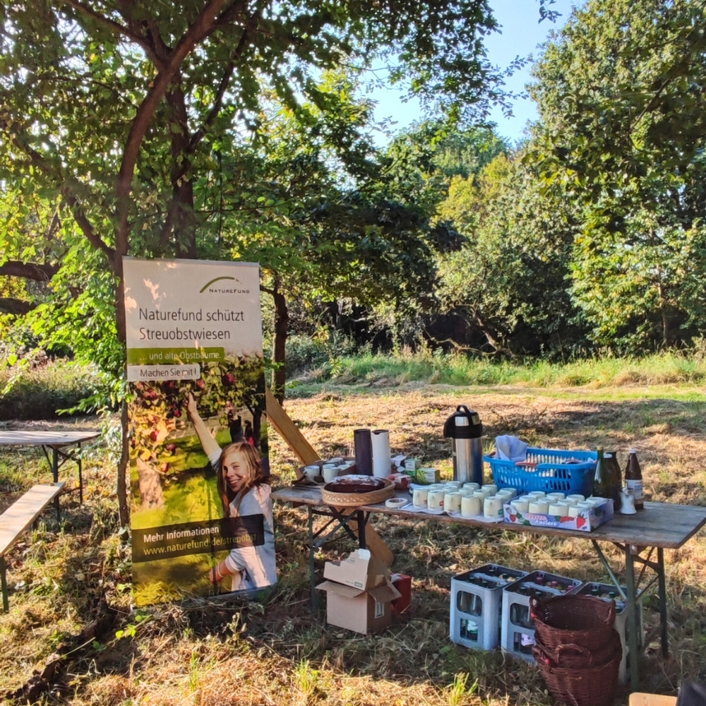 Auch der Konsum von Streuobstwiesen-Produkten, wie beispielsweise Apfelsaft, Apfelwein, Apfelessig oder Likör, hilft dabei, diese zu erhalten. Produkte erhalten Sie beispielsweise bei Landwirten im Umkreis, aber auch Bio- oder Unverpacktläden führen oftmals Produkte von nahe gelegenen Streuobstwiesen.