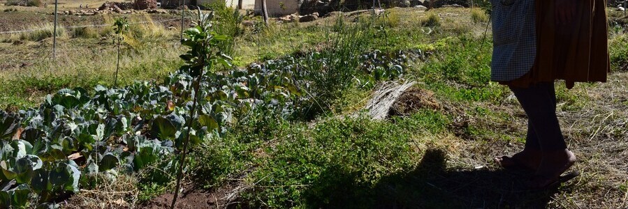 Die Pflanzen in der Parzelle werden durch einen silber glänzenden Zaun vor herumstreunenden Kühen, Schafe und Ziegen geschützt. Unsere sorgsam gepflanzten und gepflegten Bäume würden ansonsten schnell in ihren Mäulern verschwinden. Die Parzelle sieht gut aus. Noch sind es kleine Baumsetzlinge, doch neben Apfelbäumchen stehen lokale Baumarten, drumherum wachsen Mais, Erbsen, Kohl, Kürbis und Salat. Auch Schnittblumen für den lokalen Markt sind zu sehen.