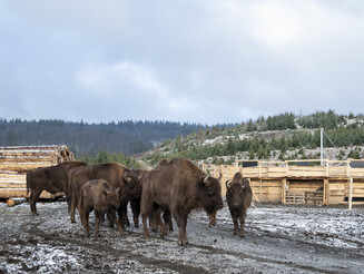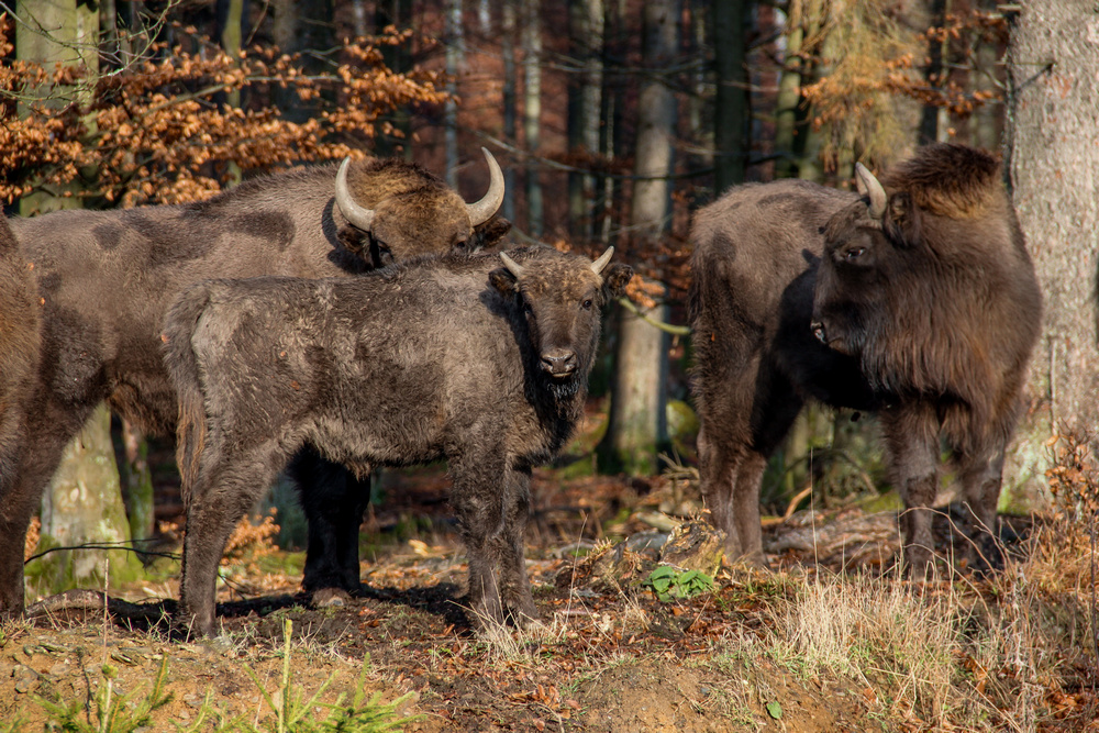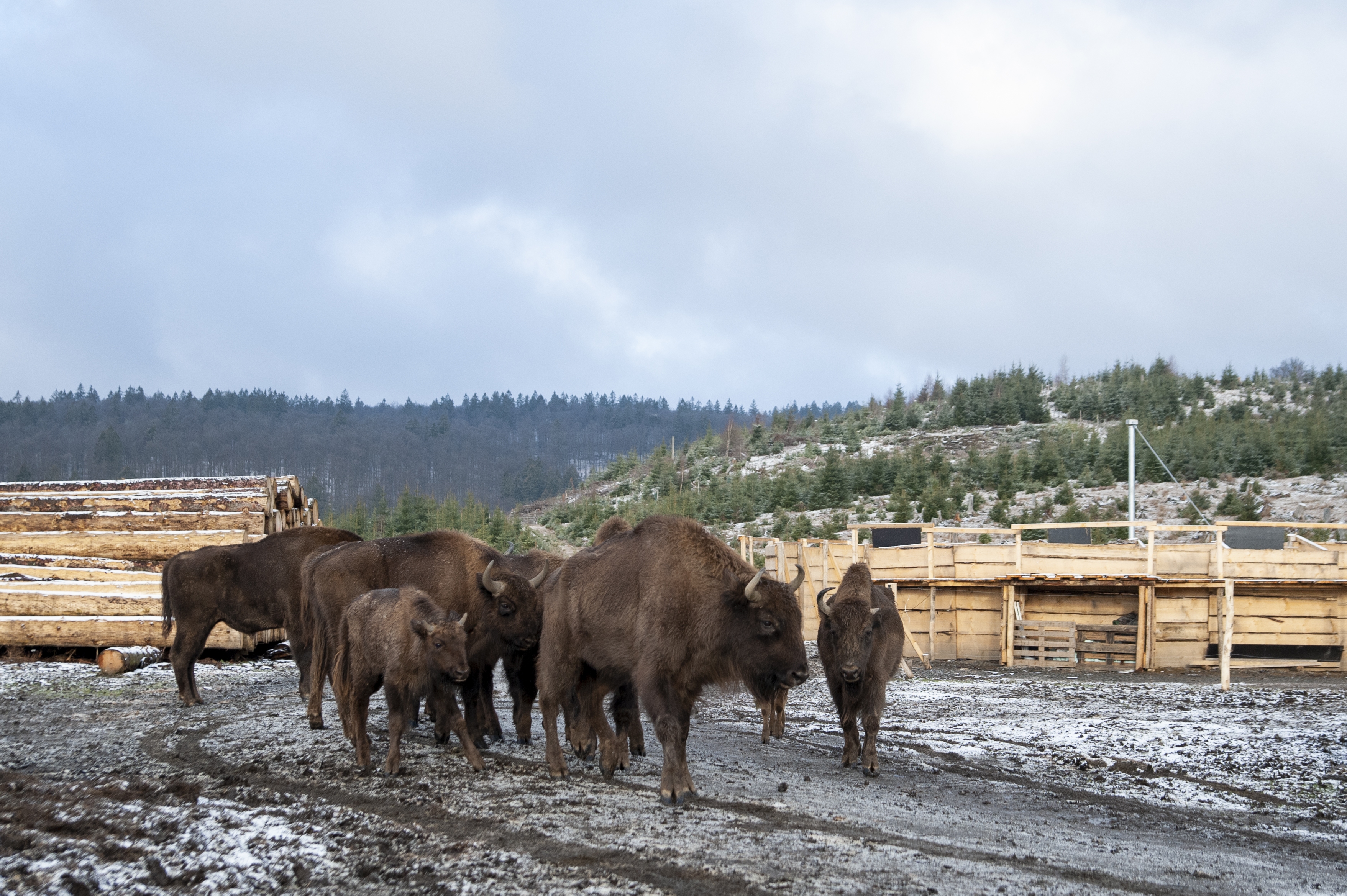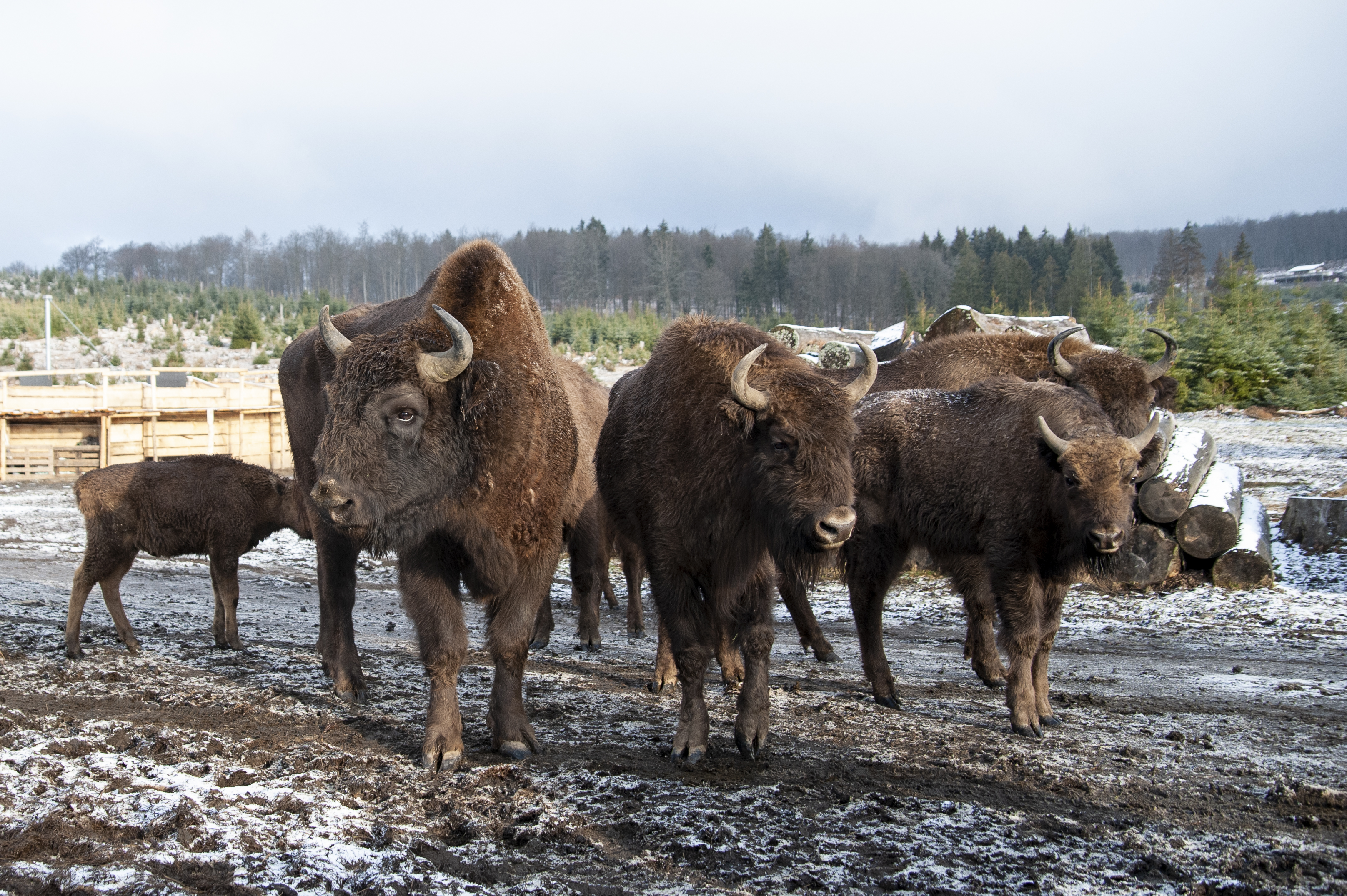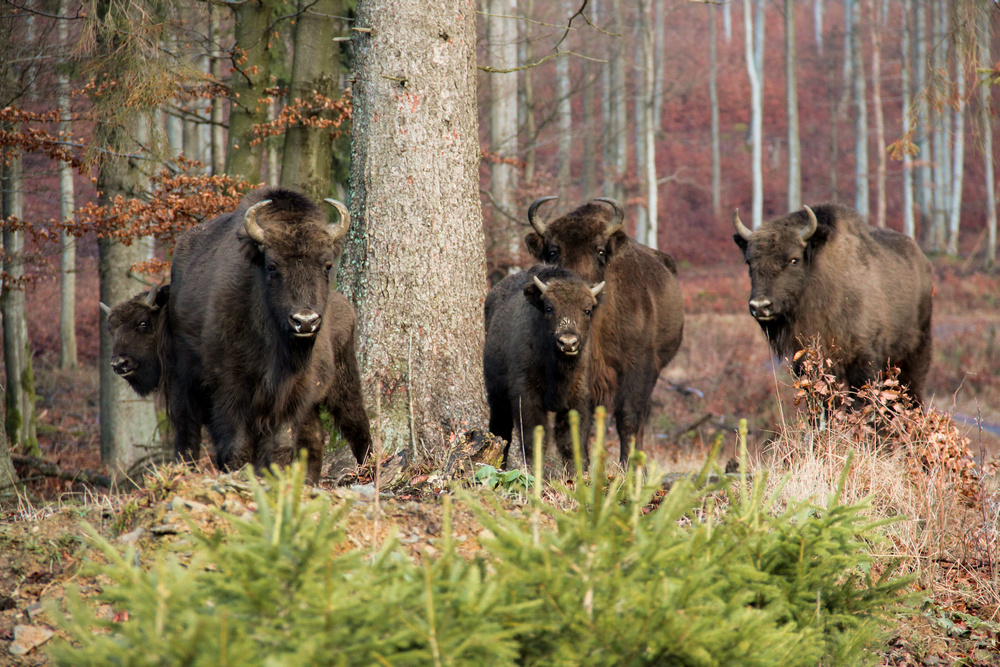 Nach mehr als 400 Jahren wurde am 11. April 2013 eine achtköpfige Wisentherde im Rothaargebirge, Nordrhein-Westfalen freigelassen. Eine Erfolgsgeschichte: Die sanften Riesen fühlen sich wohl und sind mittlerweile auf eine Herde von rund 25 Tieren angewachsen.