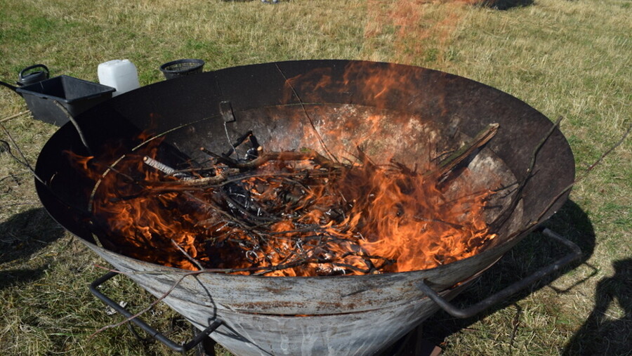 Bevor die frisch entstandene Kohle weiterverwendet wird, sollte sie gut abkühlen.